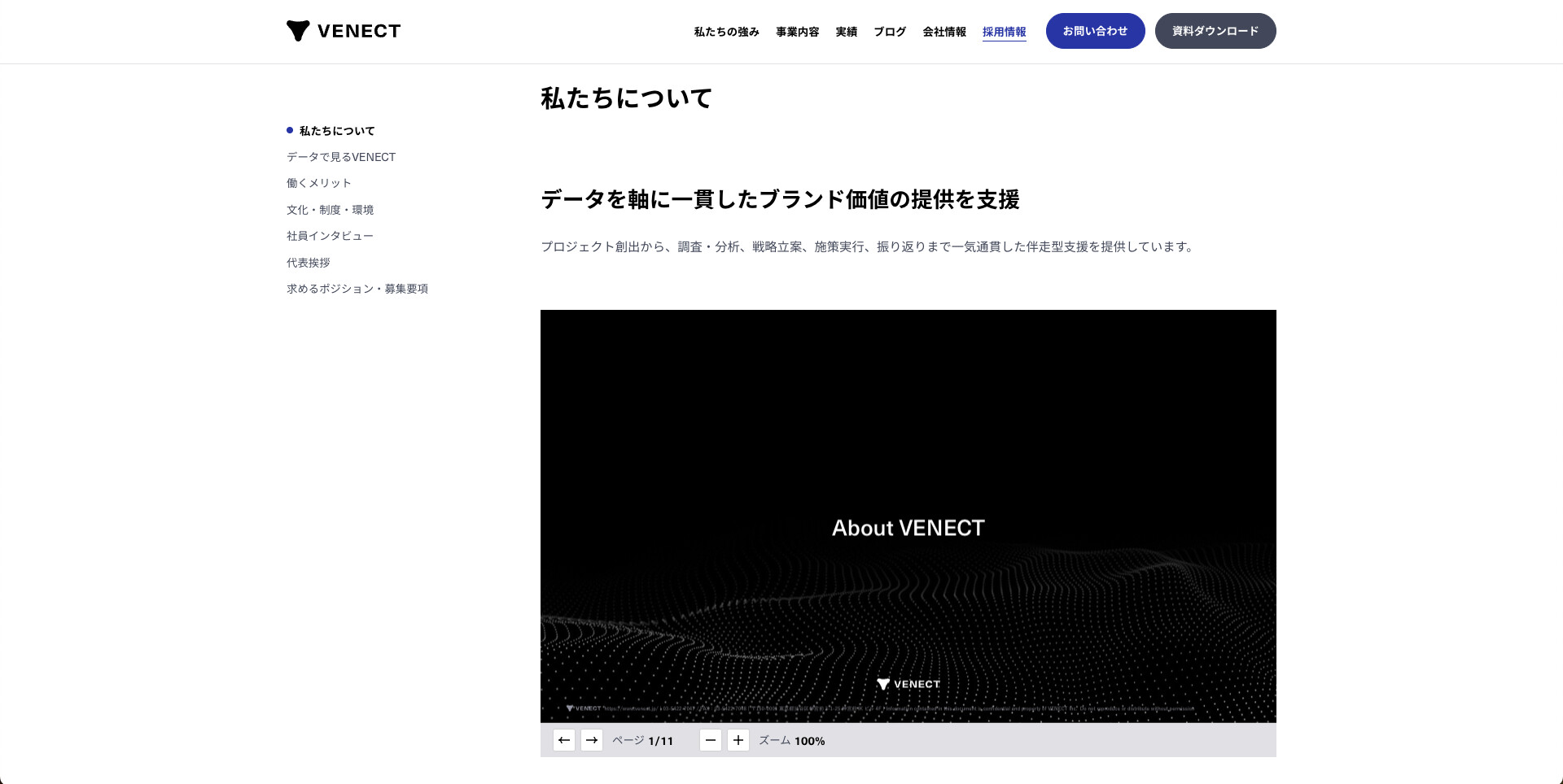 VENECTという会社について知っていただくべく、採用情報ページに掲載している「About VENECT」を更新しました。どのような姿勢で価値提供を行っているのか、働く環境がどのようなものかについて理解を深めていただける資料となっています。