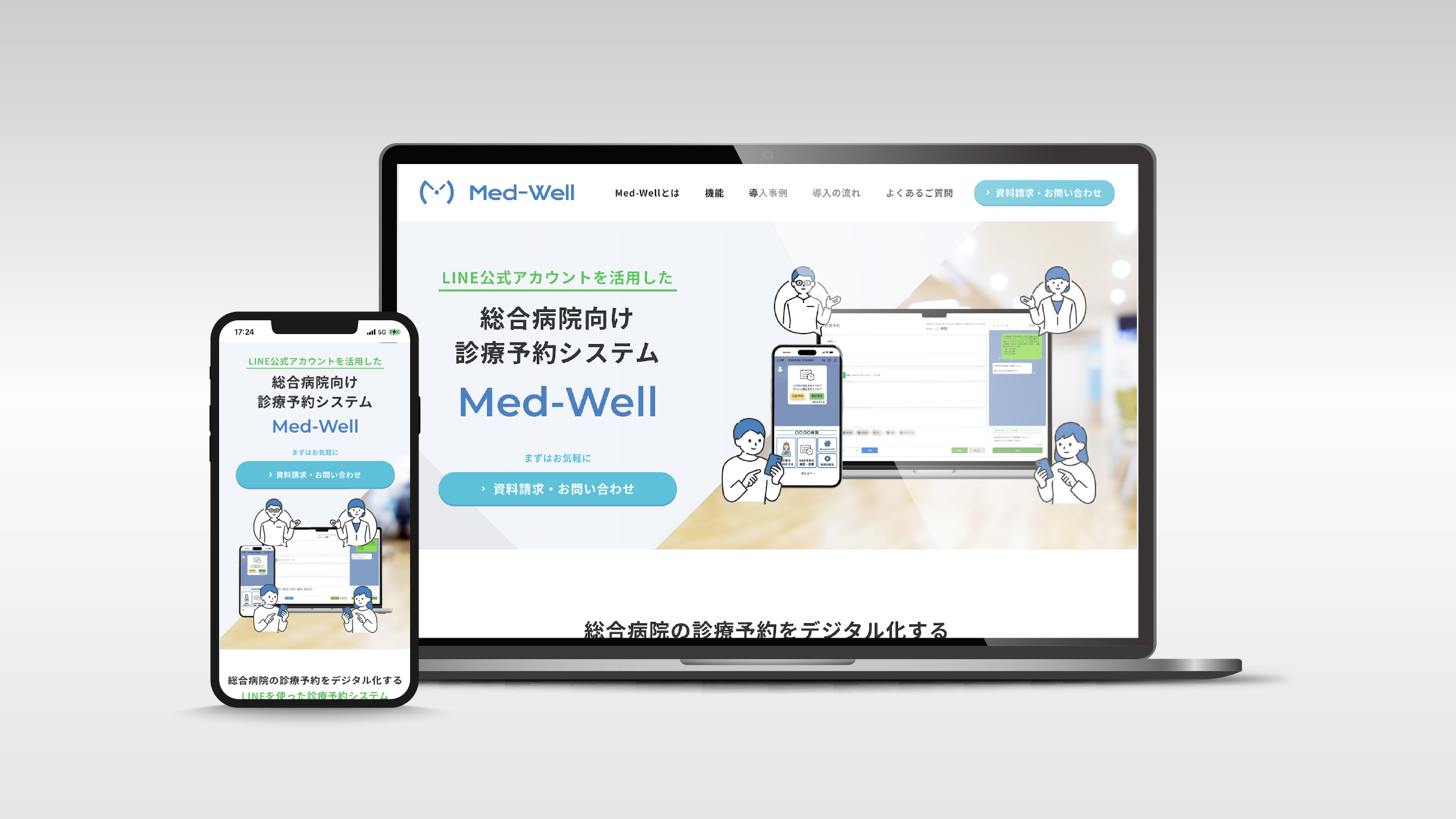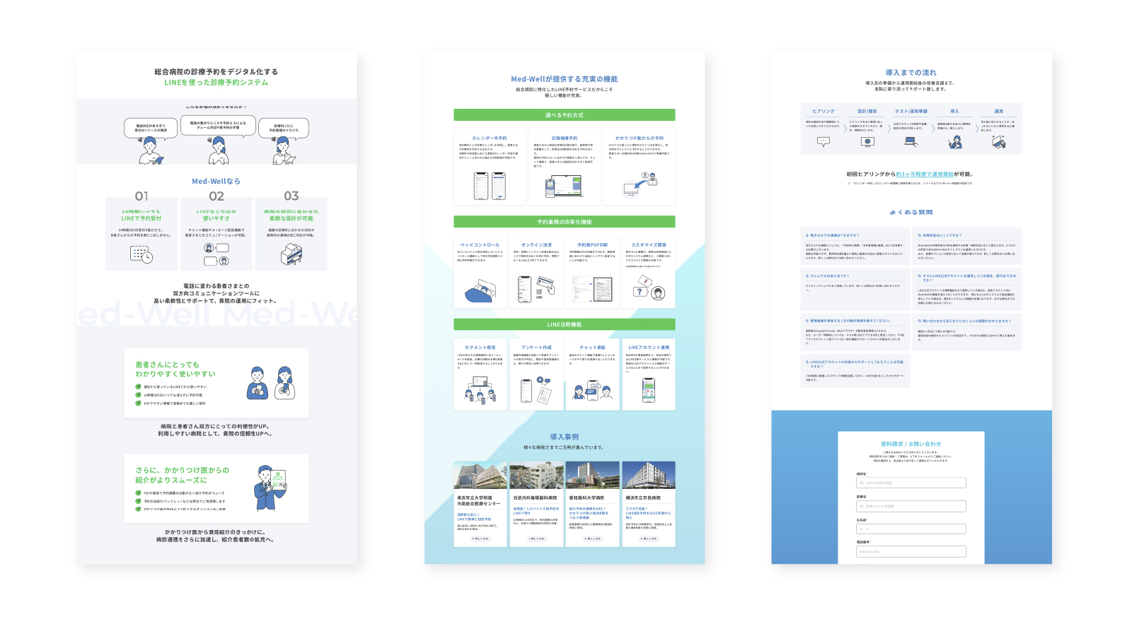 - ユーザー心理に沿ったコンテンツ構成と導線設計にしたことで、総合病院向け診療予約サービス「Med-Well (メドウェル) 」のサービス紹介、及び問い合わせ窓口として機能するサービス紹介ページの改修となった